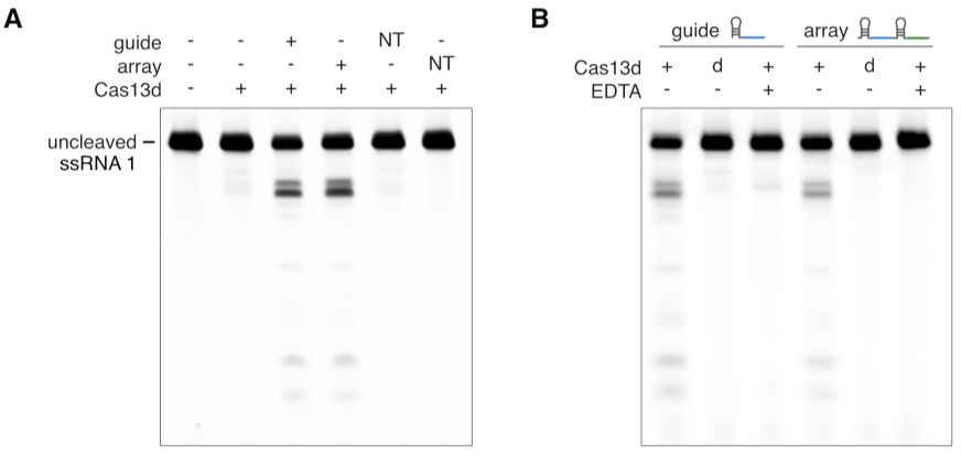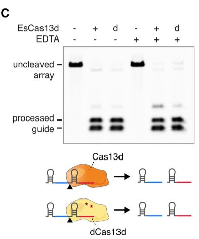 Cas13d对gRNA的加工不需要HEPN和Mg2+的参与,作者这里提到这个也为后面的应用作了铺垫。