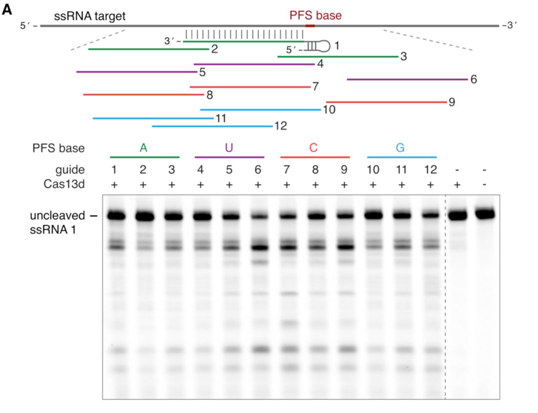先不管他,看看Cas13d的特征吧。Cas13d并不像几个哥哥那样对靶标RNA挑三拣四,不管有没有PFS base,照单全收。